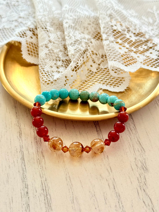 Turquoise - Citrine - Red Agate Bracelet with Swarovski Spacers