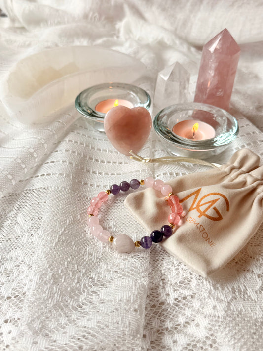 New Love Bracelet Design: Amethyst - Rose Quartz - Watermelon Quartz