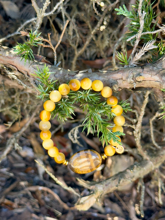 Lapis Lazuli - Natural Pearl - Natural Yellow Amber Bracelet