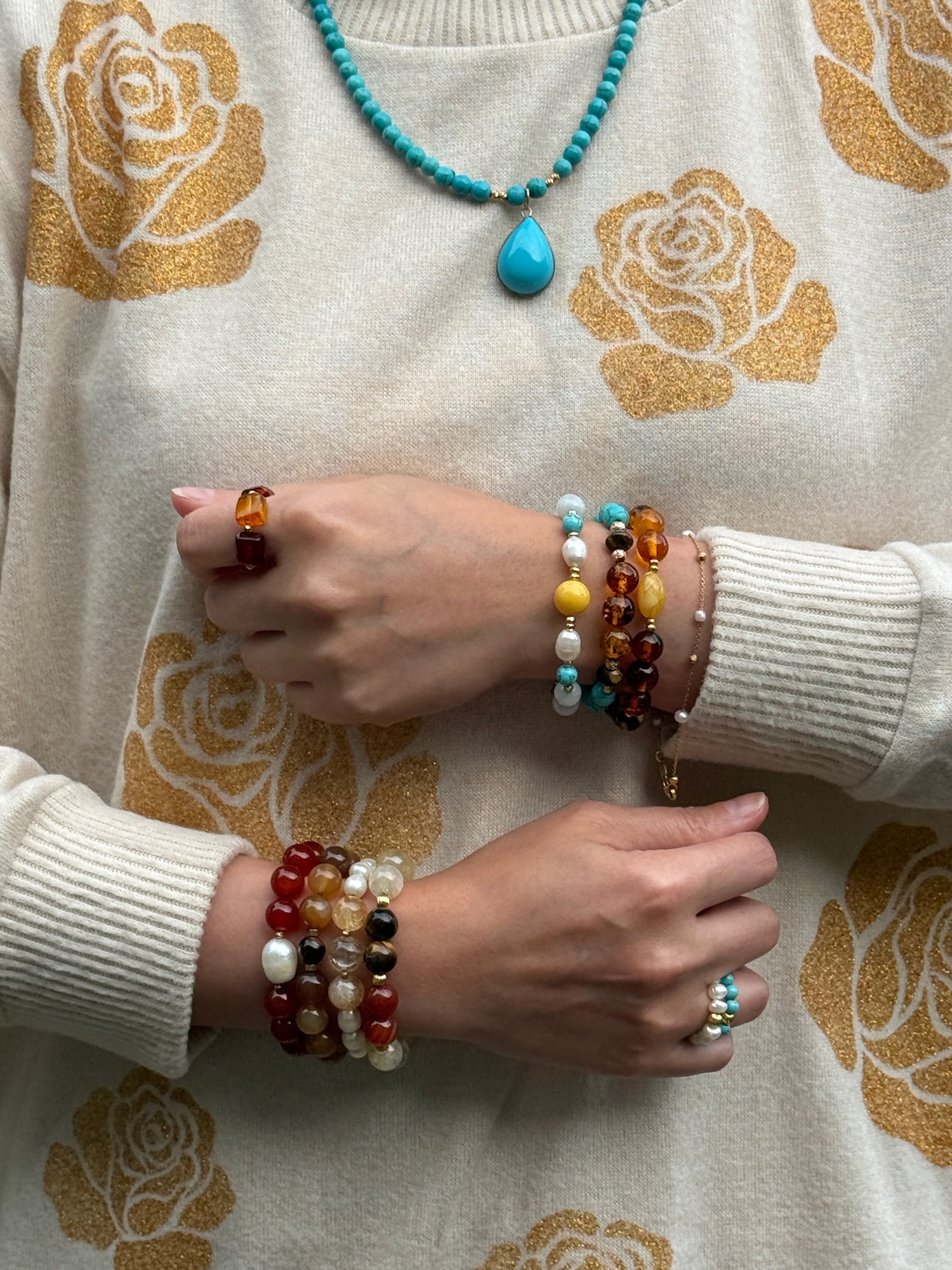 Red Agate - Citrine - Tiger Eye Bracelet Set